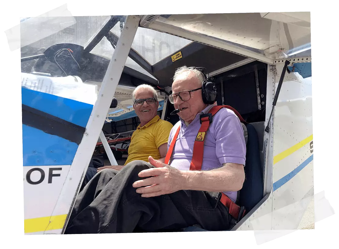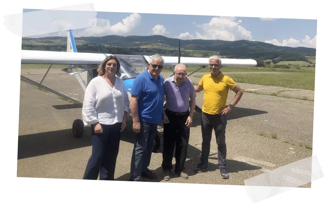 M. Quiblier, ancien instructeur et pilote de voltige à l’aéroclub de Saint Chamond, a pu revivre ces sensations en réalisant un baptême de l’air sur un petit ULM accompagné de Samy un instructeur chevronné. Ce fut aussi l’occasion pour lui de retrouver quelques copains de club autour d’un succulent repas préparé par Yves et Huguette.