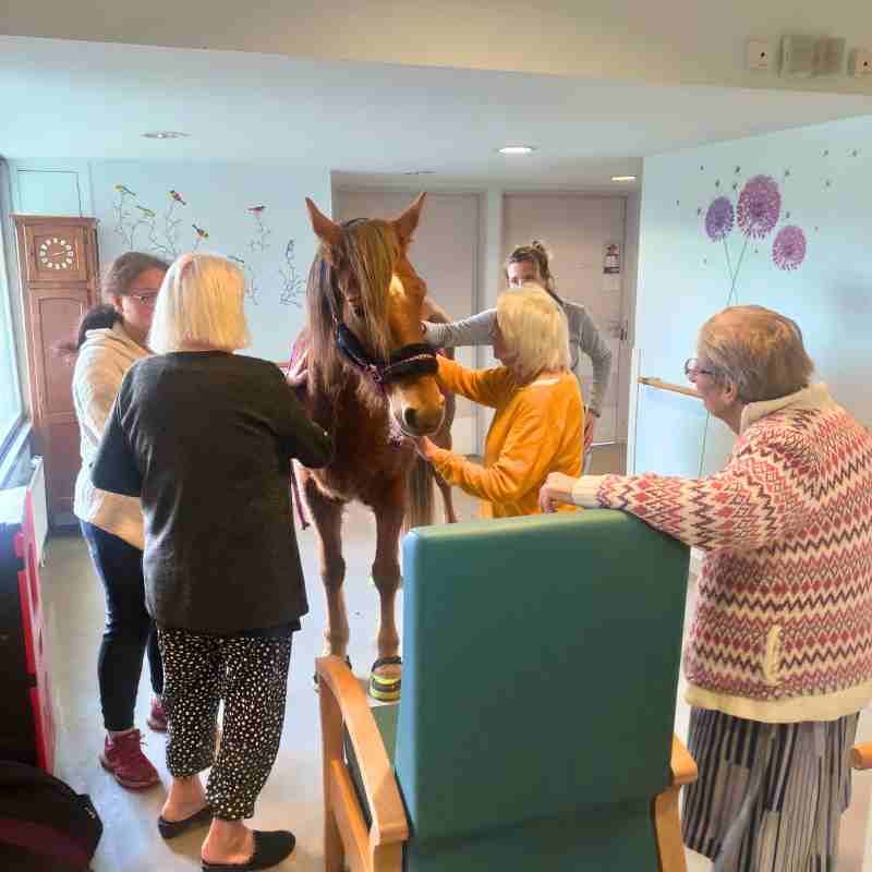 La présence du cheval au sein de l’EHPAD est une expérience unique qui suscite des souvenirs, des émotions et des interactions précieuses. La simple chaleur de son souffle, la douceur de son regard ou encore le contact de sa robe ont éveillé chez certains résidents des souvenirs d’enfance et une envie spontanée de communiquer.
