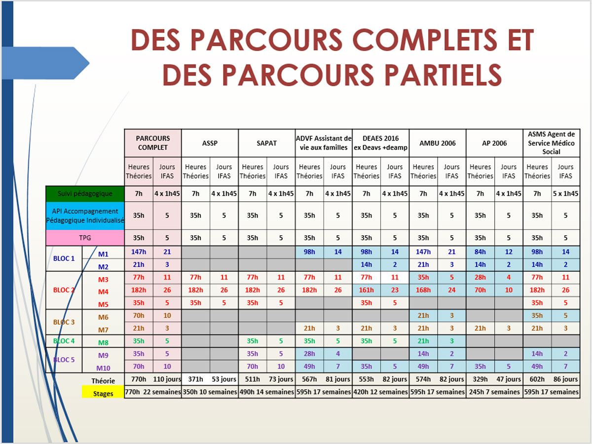 - A.P.I. : Accompagnement Pédagogique Individualisé. Permet de réaliser un accompagnement pédagogique ciblé compte tenu de la diversité des profils et des nouvelles modalités d’accès à la formation. 35 heures en début de formation.