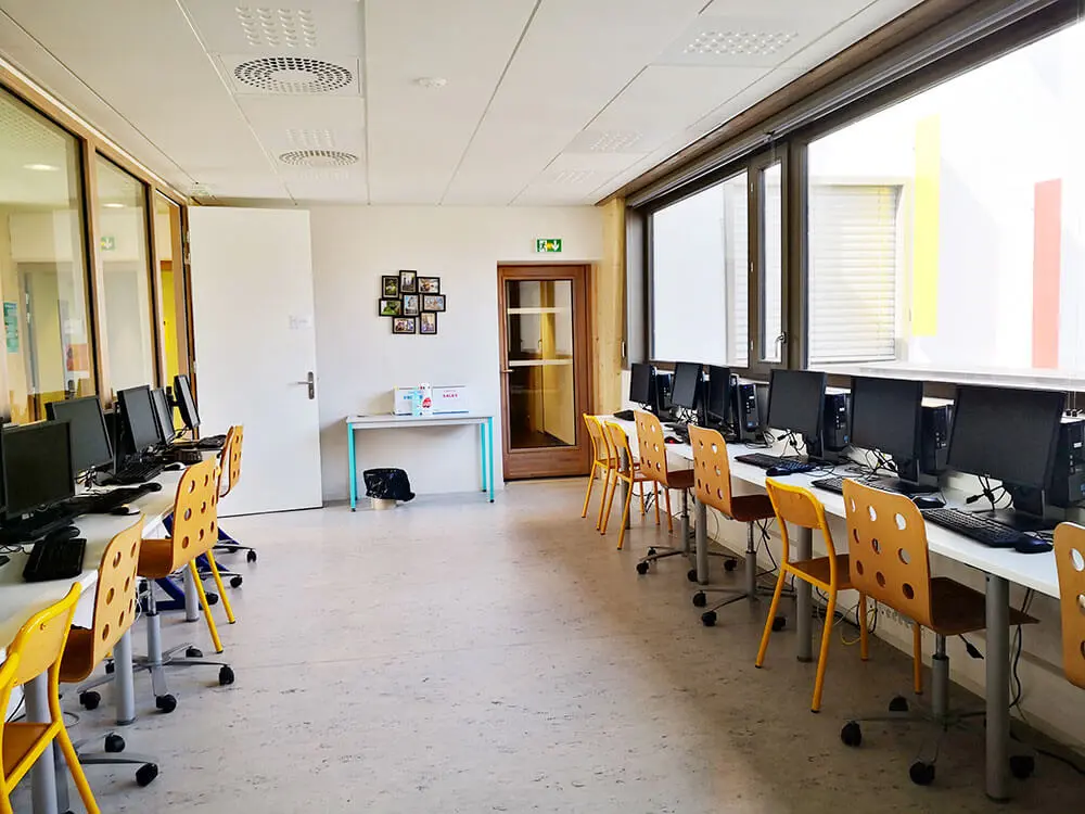 Chaque salle informatique dispose de 18 postes informatiques et d’une imprimante qui est à la disposition des étudiants (impressions gratuites sur papier fourni par l’apprenant).